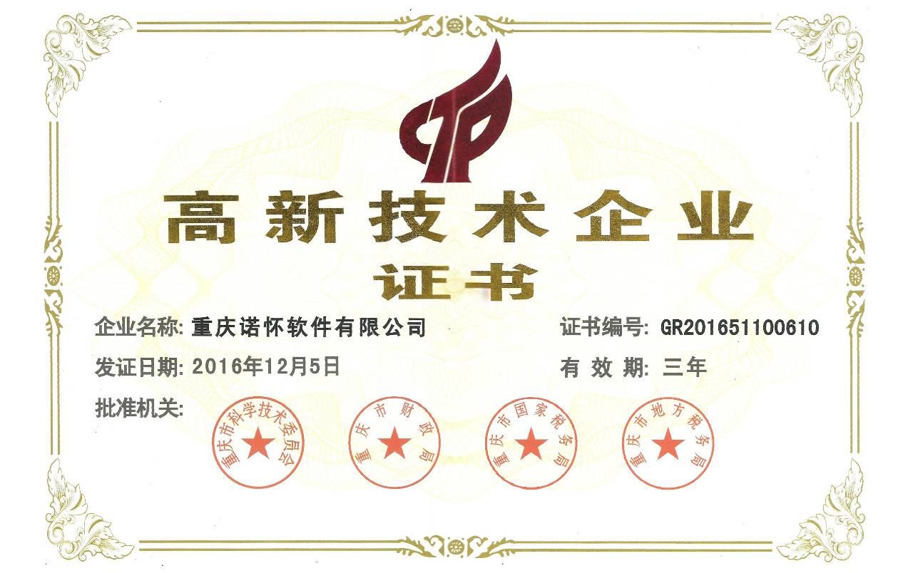特大喜讯!诺怀软件荣获“高新技术企业”称号