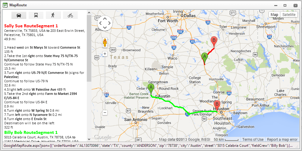 该功能用于FieldCrew人员分派流程,管理员可以选择待处理的订单以及选择订单的处理人,并根据订单的位置信息,在地图上将人员需经过的最短路径信 息显示在Google地图上,供管理员决策并指定相关合适的订单处理人员(FieldCrew)。该功能使用Google Maps API库开发。